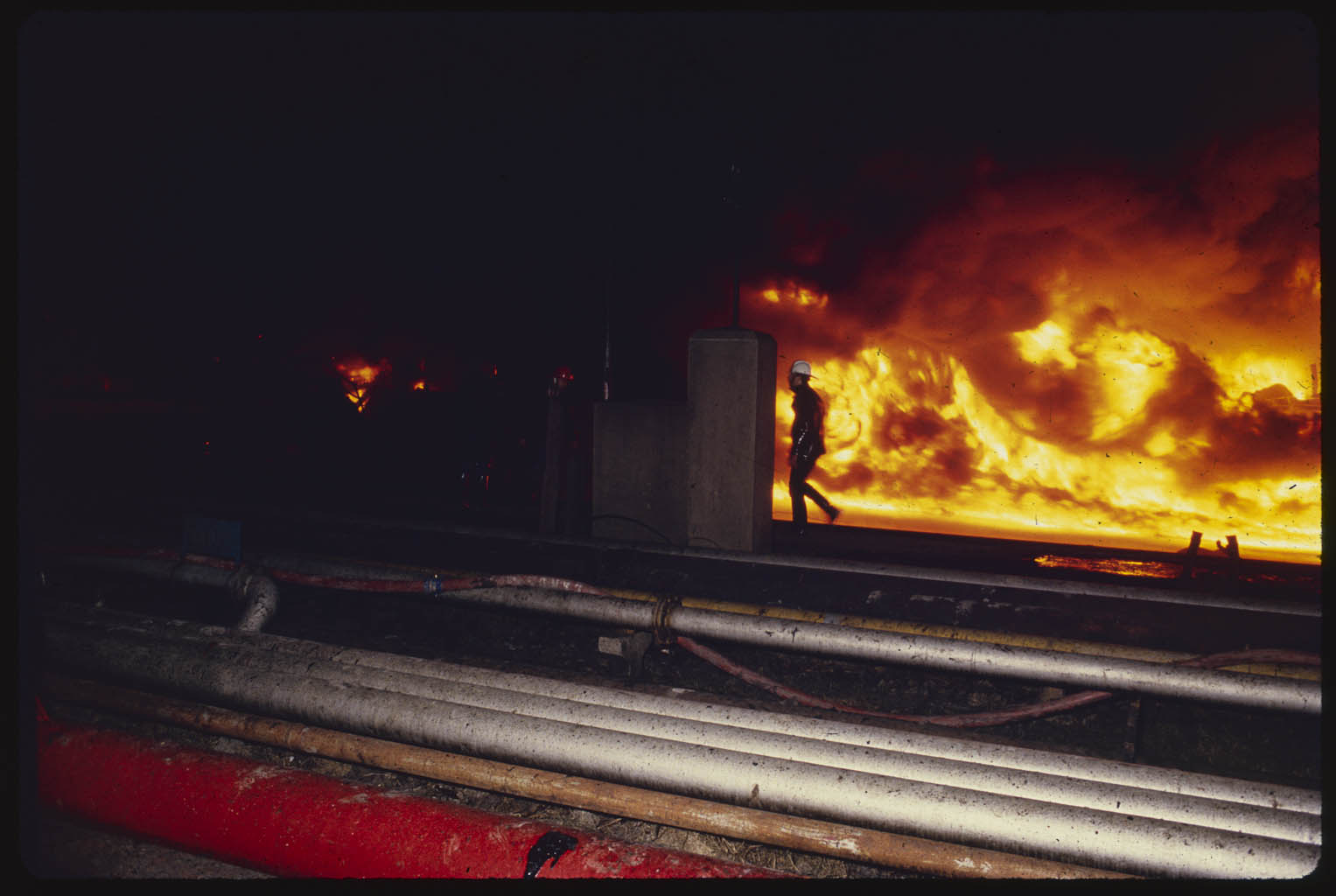 Registro del incendio del buque tanque “Perito Moreno” propiedad de la flota costera de YPF, iniciado la noche del 28 de junio mientras descargaba crudo, lo que generó una explosión que puso en peligro al Polo Petroquímico y a la comunidad de Villa Inflamable. Dock Sud, Buenos Aires, Argentina.