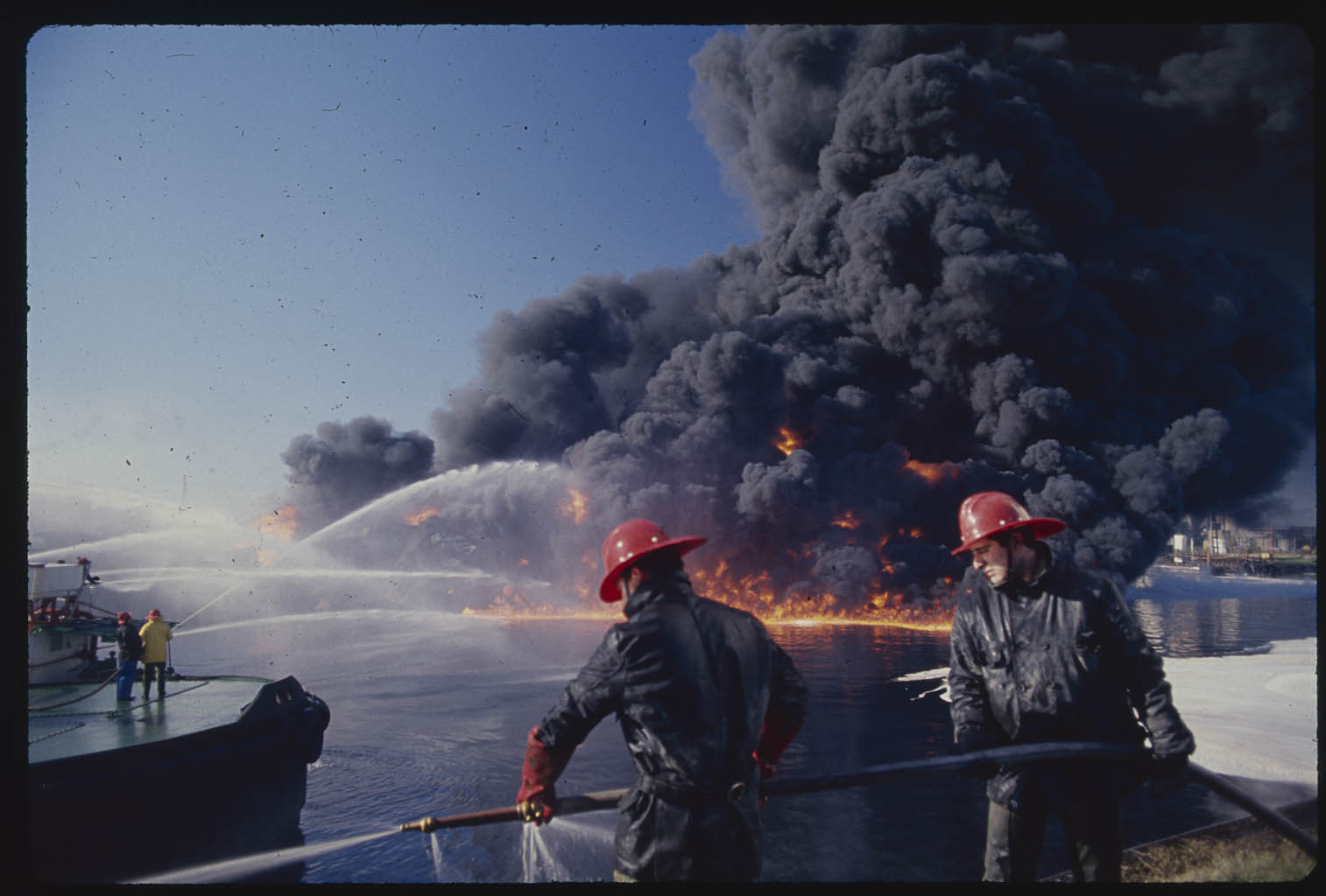 Registro del incendio del buque tanque “Perito Moreno” propiedad de la flota costera de YPF, iniciado la noche del 28 de junio mientras descargaba crudo, lo que generó una explosión que puso en peligro al Polo Petroquímico y a la comunidad de Villa Inflamable. Dock Sud, Buenos Aires, Argentina.