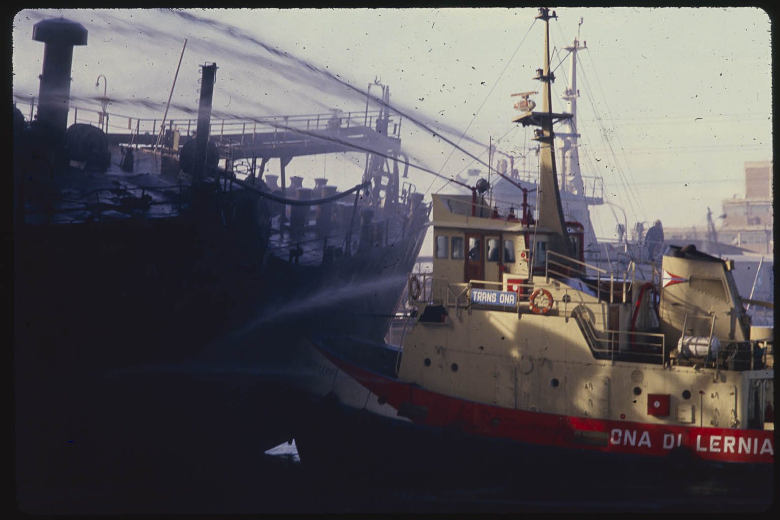 Registro del incendio del buque tanque “Perito Moreno” propiedad de la flota costera de YPF, iniciado la noche del 28 de junio mientras descargaba crudo, lo que generó una explosión que puso en peligro al Polo Petroquímico y a la comunidad de Villa Inflamable. Dock Sud, Buenos Aires, Argentina.